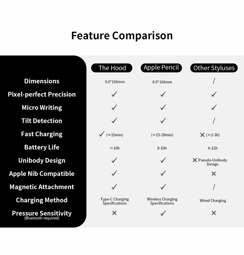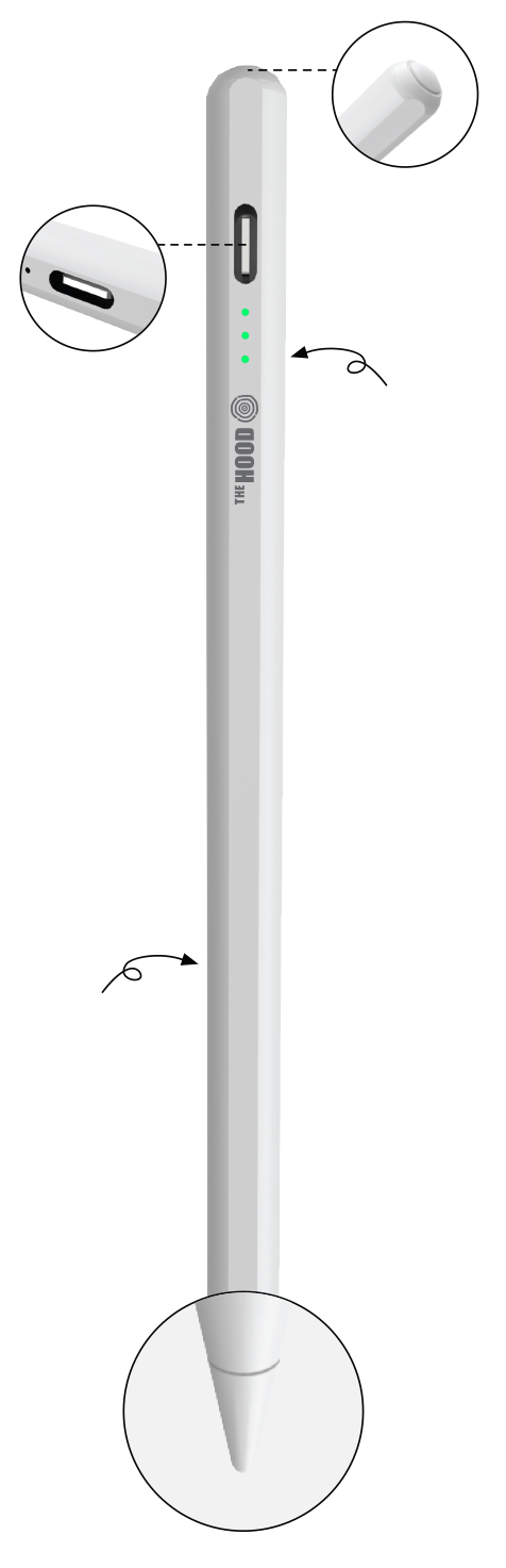 Real-time battery level display Type-C charging port Palm rejection and tilt sensitivity