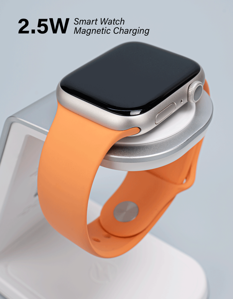 Effortlessly charge up to three of your devices simultaneously This charging station is compatible with iPhone series / Galaxy S series and support wireless charger smart phone , AirPods 3/Pro/2/Pro 2,and iWatch 2-9 Series