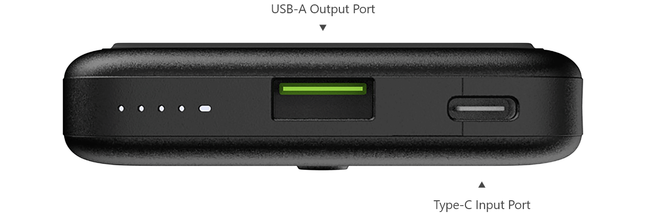 This product is equipped with a Type C and USB-A output port. The Type-C port provides up to PD 3.0 20W output, supports charging of most Smart Phone and Laptops with PD charging.